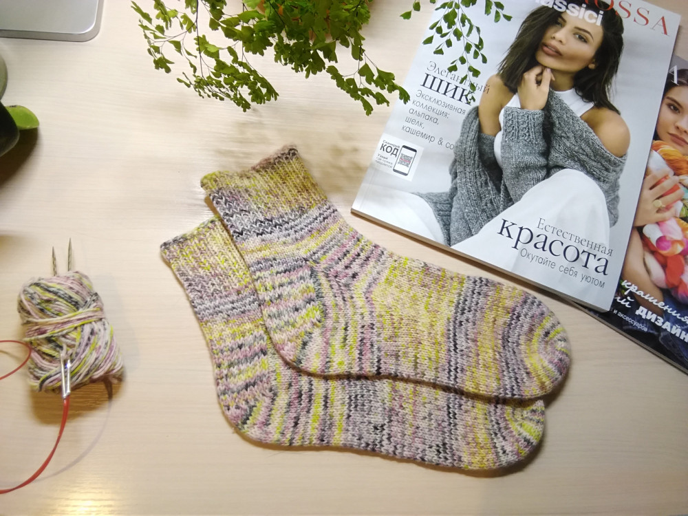 Для вязания понадобится пряжа носочная и спицы круговые на леске 80-100 см.